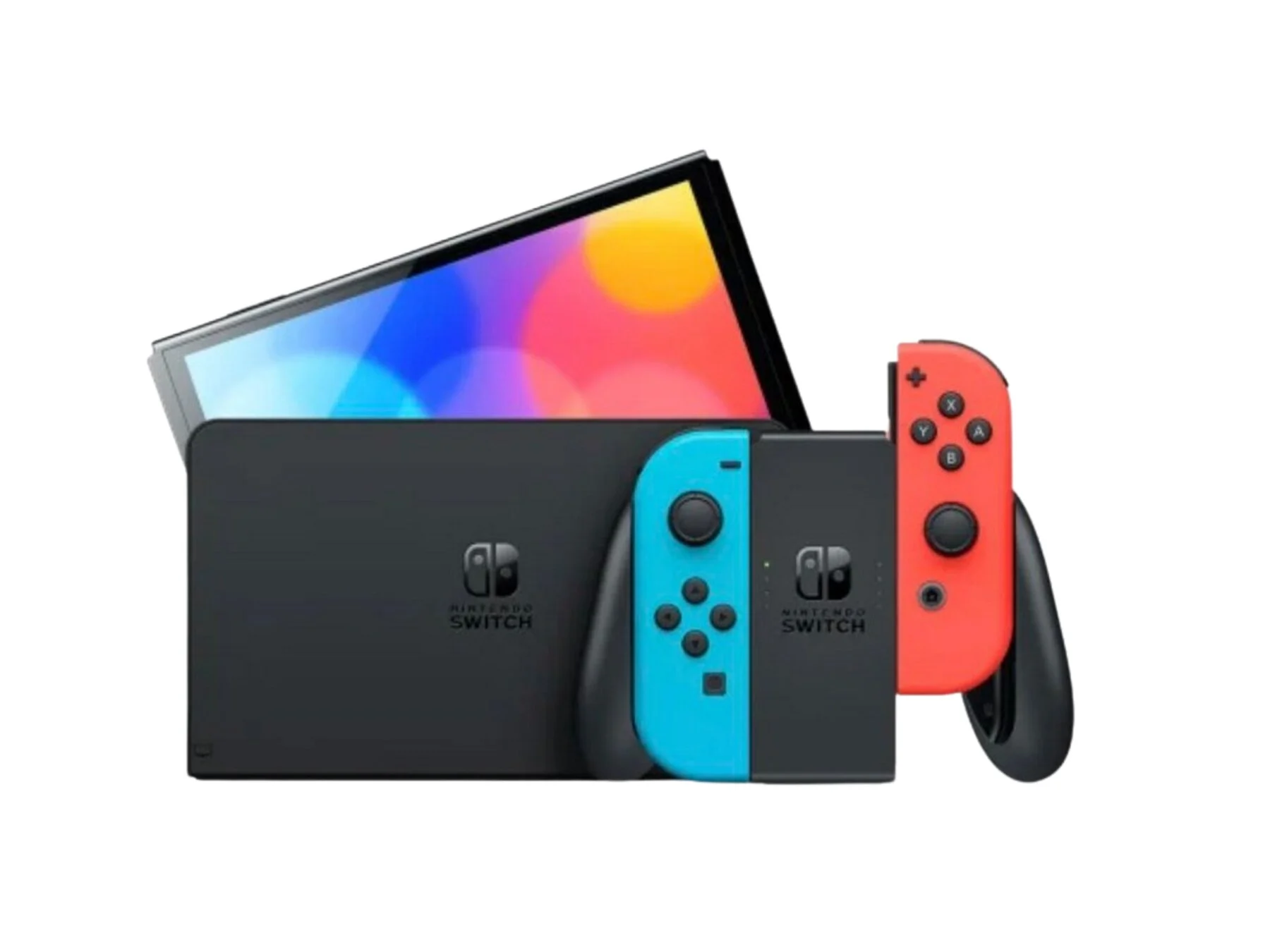 Disfruta de los juegos en el formato de la consola Nintendo Switch OLED en color azul y rojo neón, pensada para el hogar con la diferencia de ser también portátil para llevarte tus partidas a todas partes. La innovación en el formato del diseño con pantalla OLED y su gran flexibilidad te alucinará.