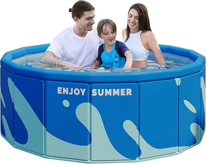- Material reutilizable: con la ayuda de una placa de refuerzo compuesta de alta resistencia, la piscina plegable cuenta con una vida útil prolongada. Diseñado de forma robusta con PVC engrosado extrafuerte y red sándwich, el material compuesto de 5 capas es aún más resistente.